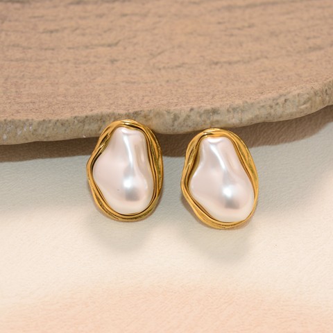 Pendientes de aro Gota de agua Perla de imitación barroca Acero inoxidable Pendientes circulares dorados Joyería Vintage para mujer