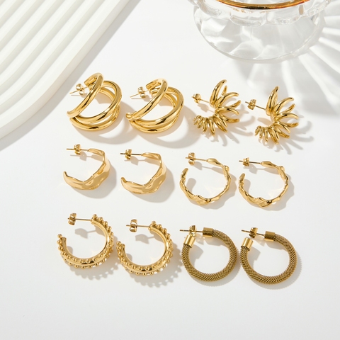 Set di orecchini in oro placcato oro 18K in acciaio inossidabile, orecchini a cerchio ipoallergenici e disegni a catena per gioielli di moda da donna